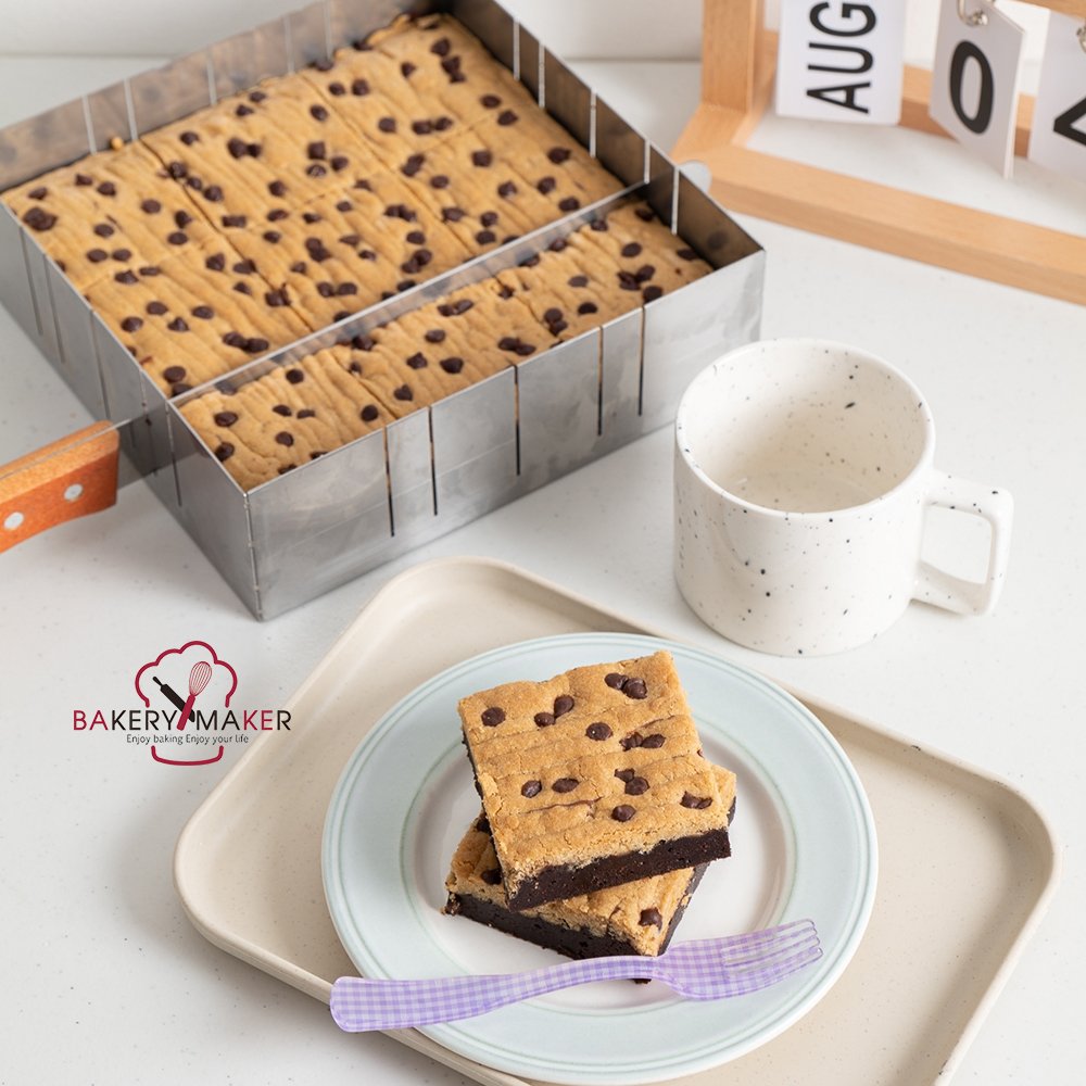 8.นำ Brookie ลอกกระดาษรองอยออก ใส่ใน แท่นตัดขนม หั่นขนาดตามชอบ ได้ 3 ขนาด