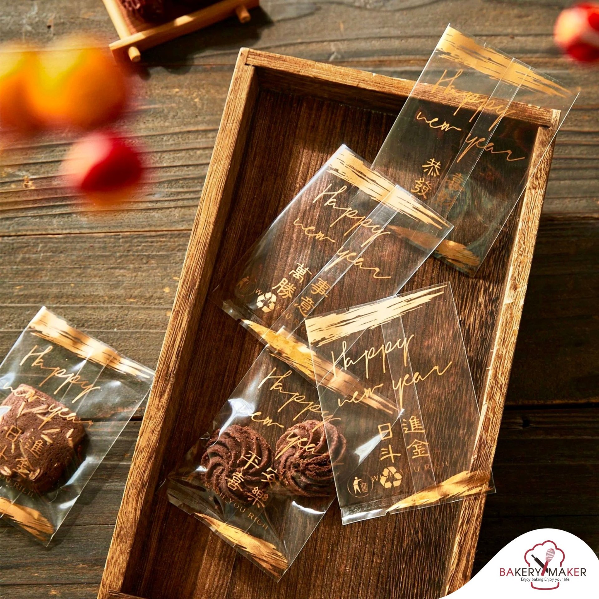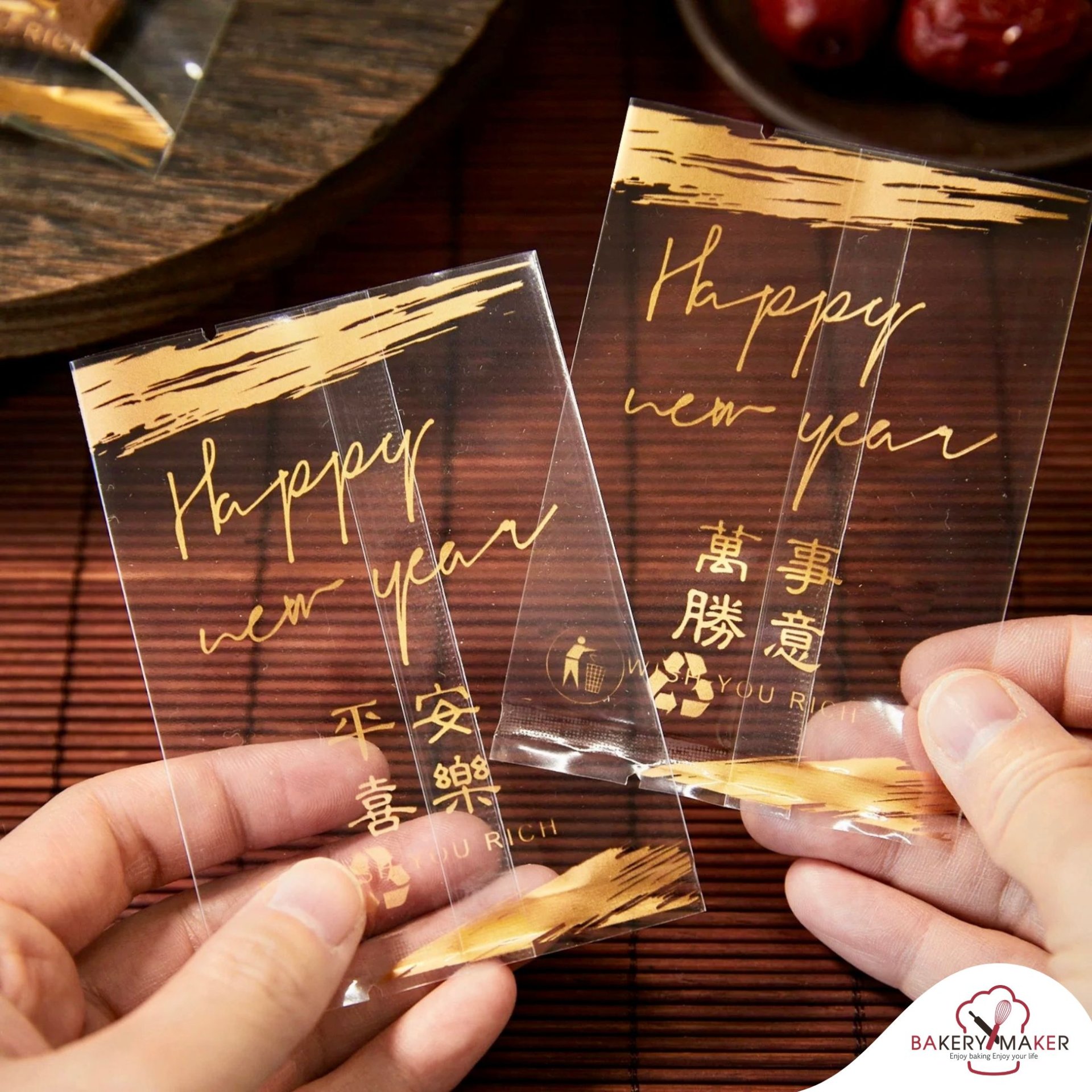 ถุงซีลอักษรจีนพิมพ์ทอง 50 ใบ คละ 4ลาย