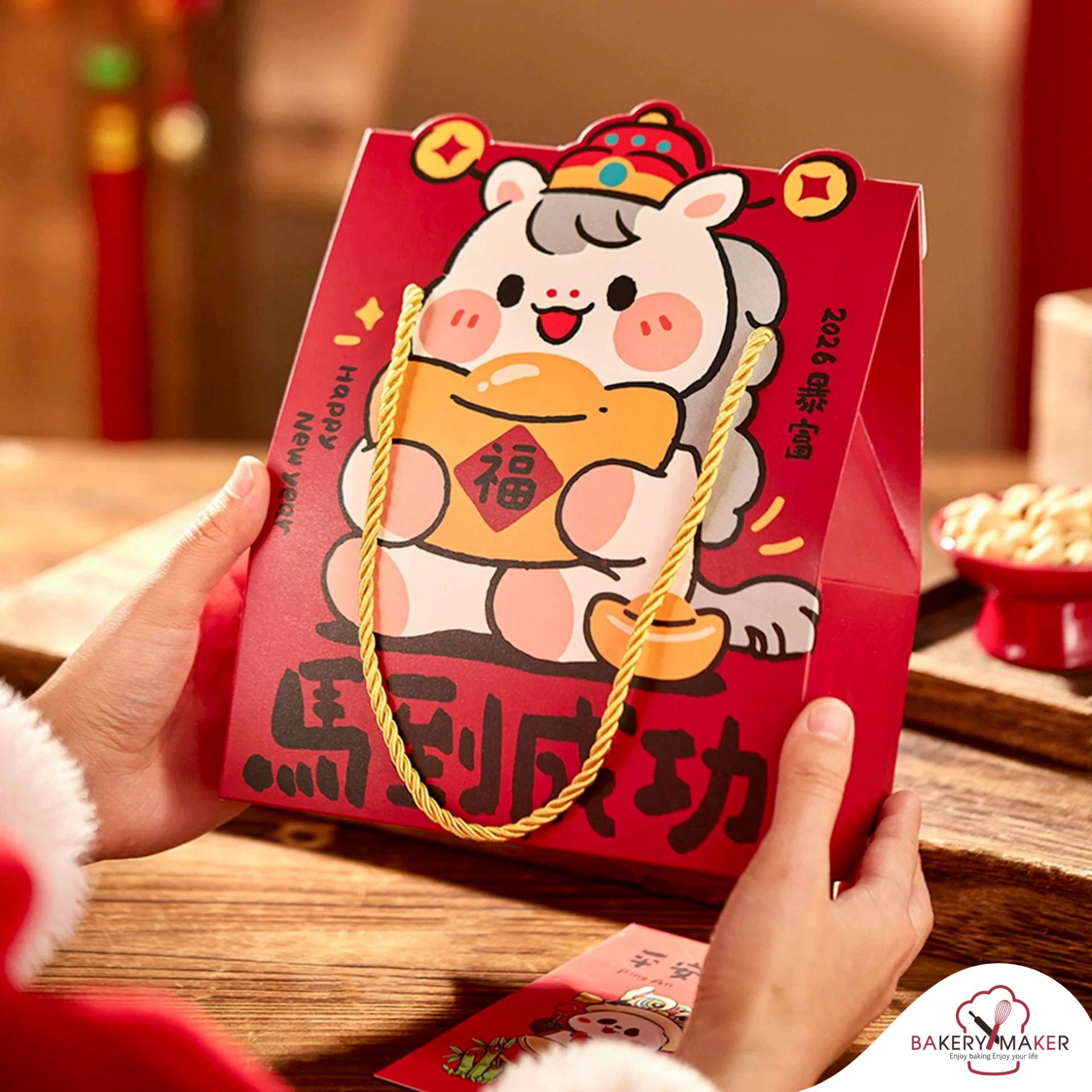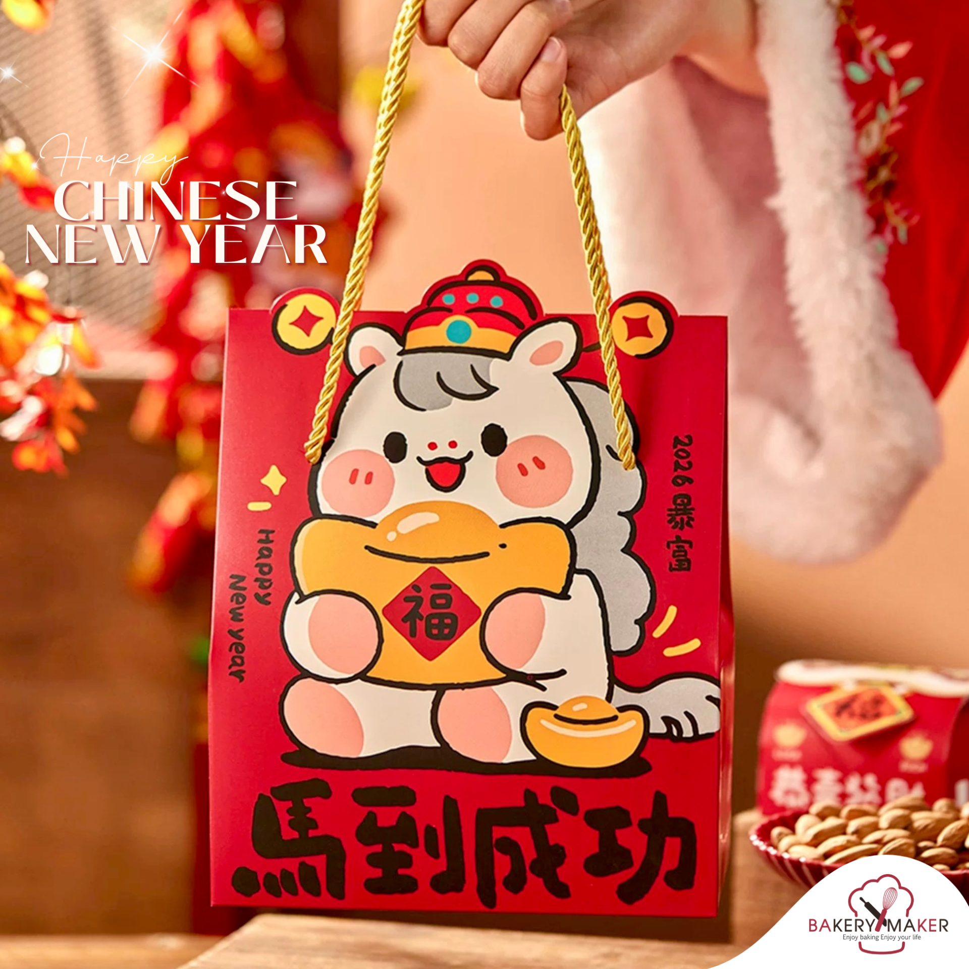 กล่องกระดาษหูหิ้วพิมพ์ลายน้องม้าตรุษจีน 5 ใบ