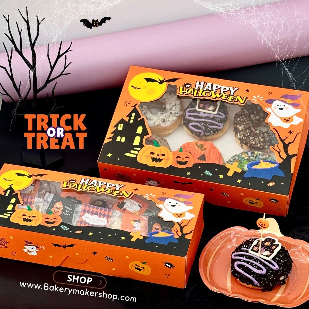 กล่องคุกกี้/โดนัท พิมพ์ลายฮาโลวีน 5 ใบ