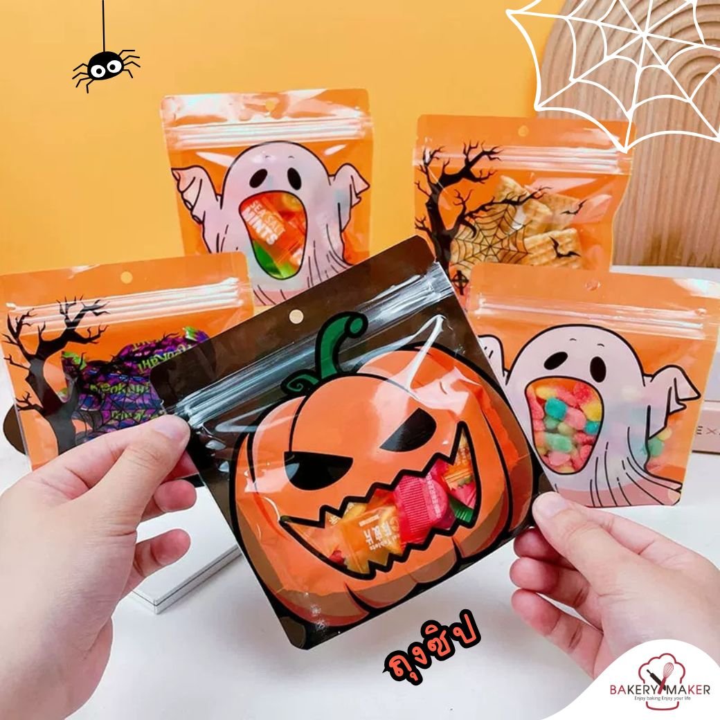 ถุงมีซิป พิมพ์ลายฮาโลวีน Halloween คละ 3 ลาย ( 10 ใบ)
