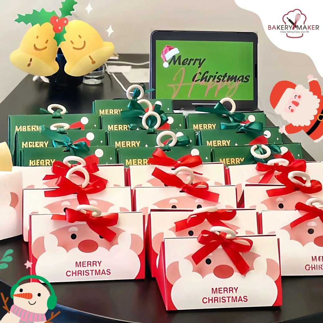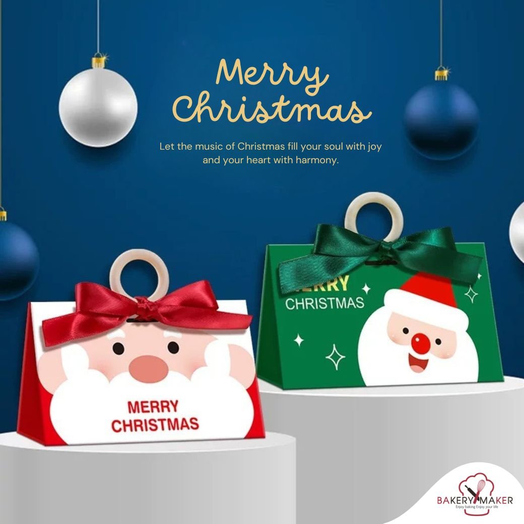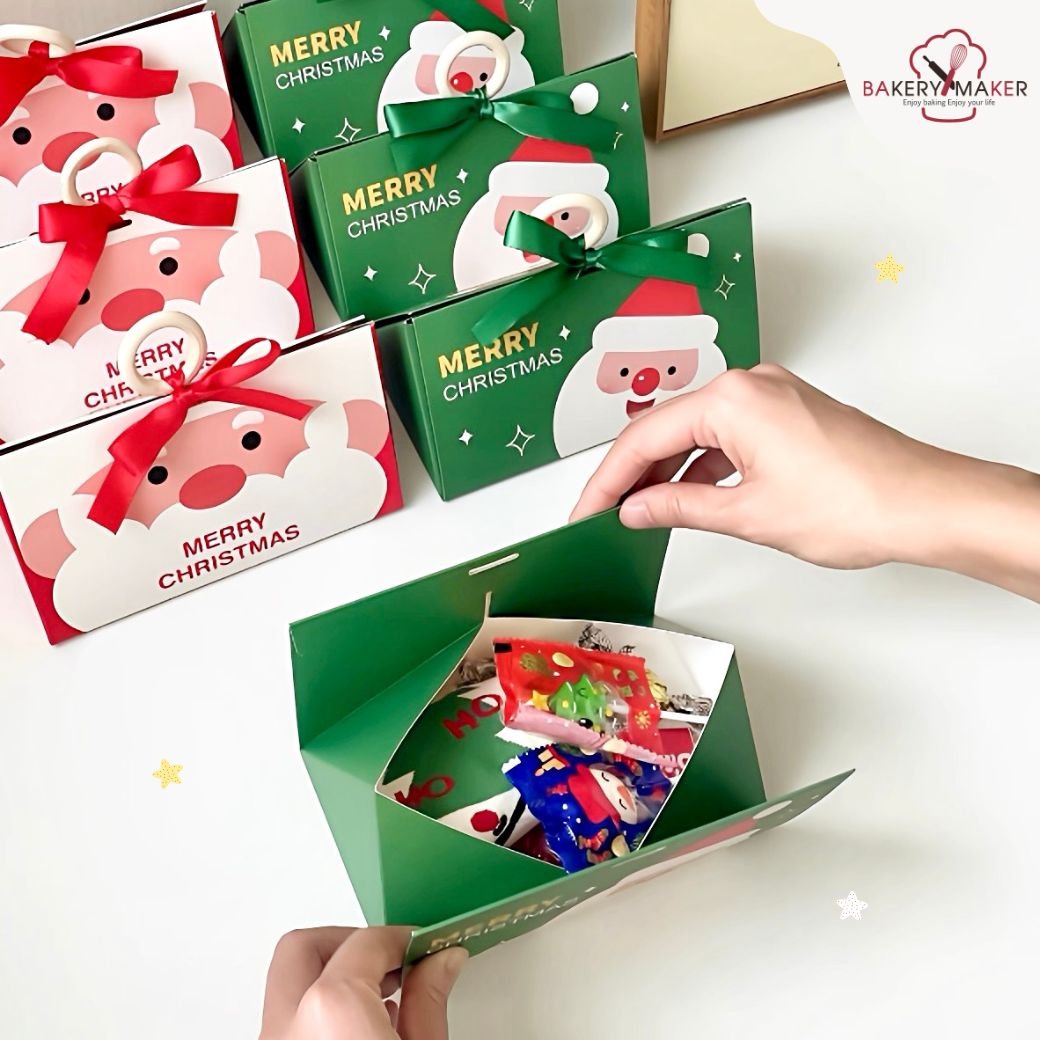 กล่องกระดาษ ทรงสามเหลี่ยม Christmasลายแซนต้า 2 สีแพค 6 ใบ พร้อมริบบิ้นขนาด 10 x 17 x สูง 8.5 ซม.