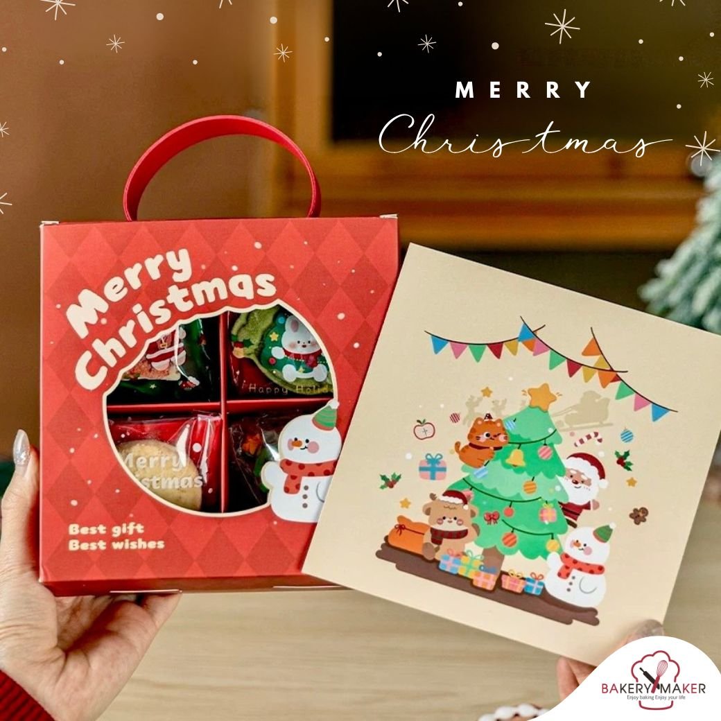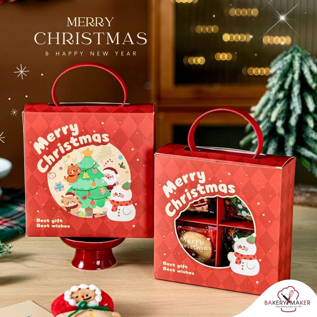 กล่องคุกกี้ กล่องกระดาษ 4 ช่อง Christmas แพค 5 ใบ