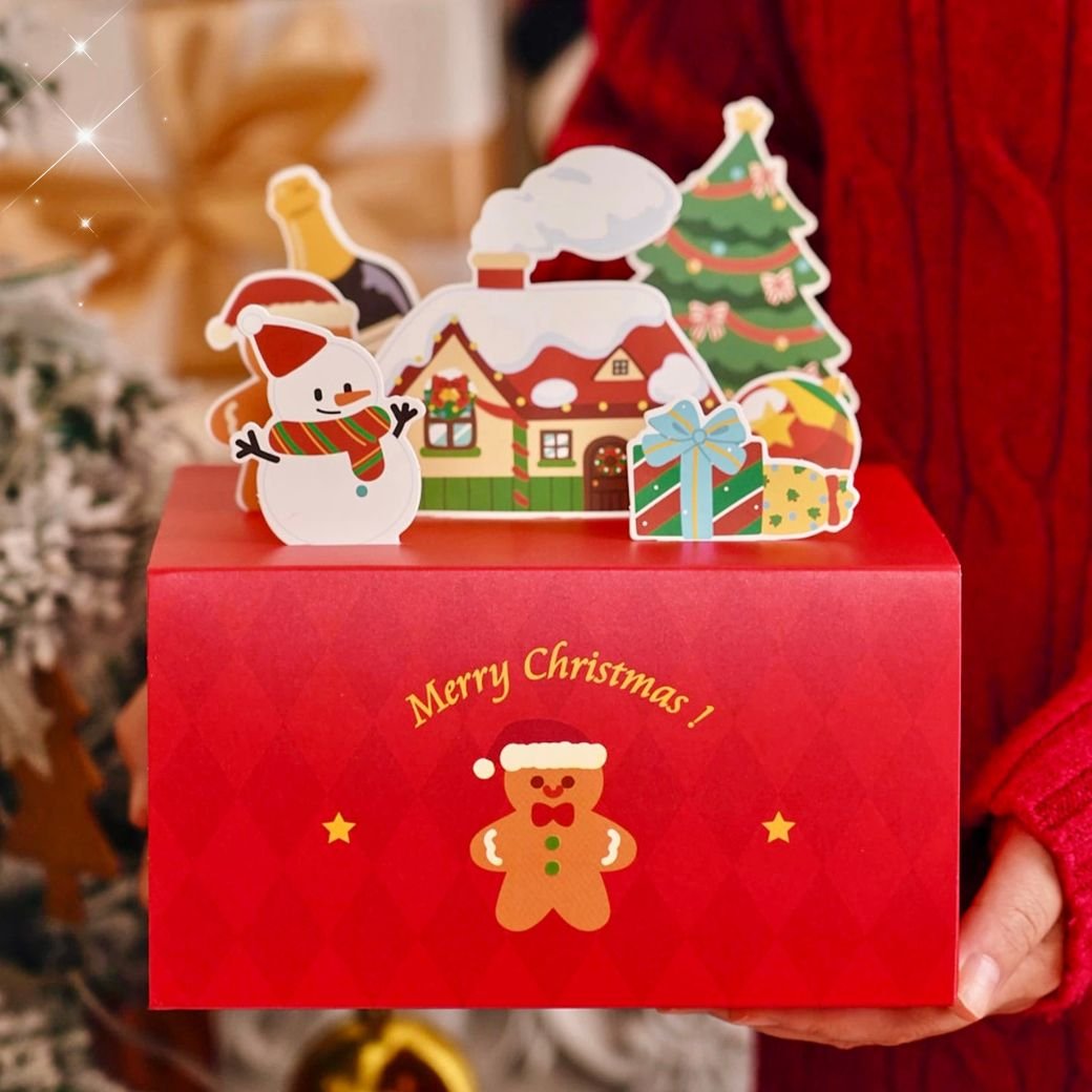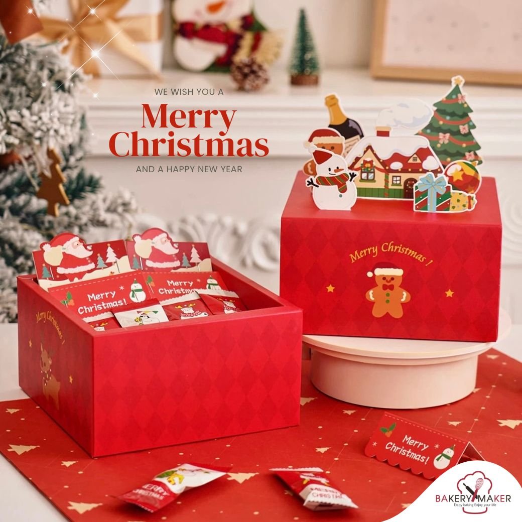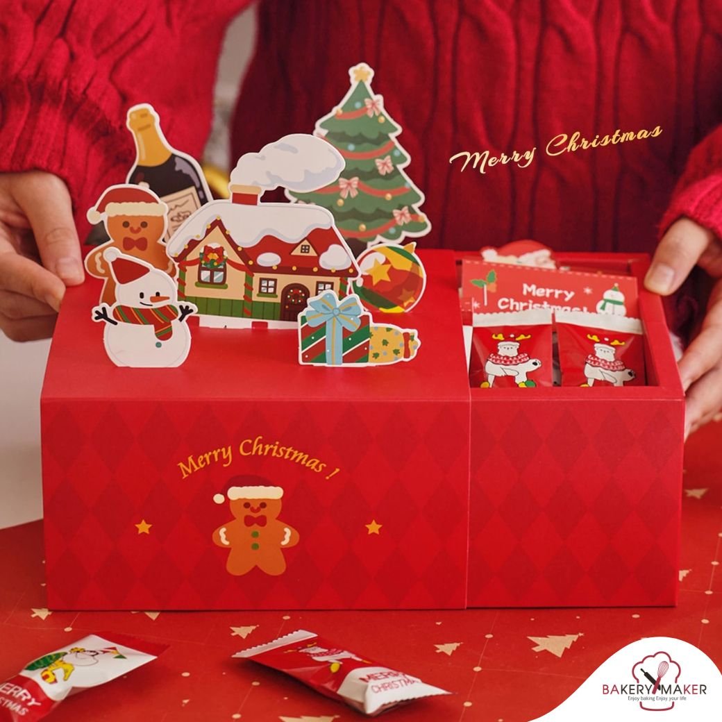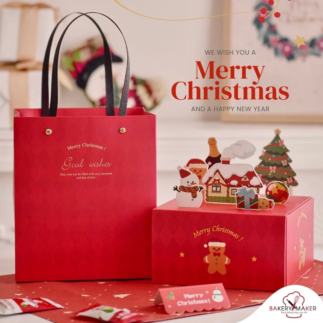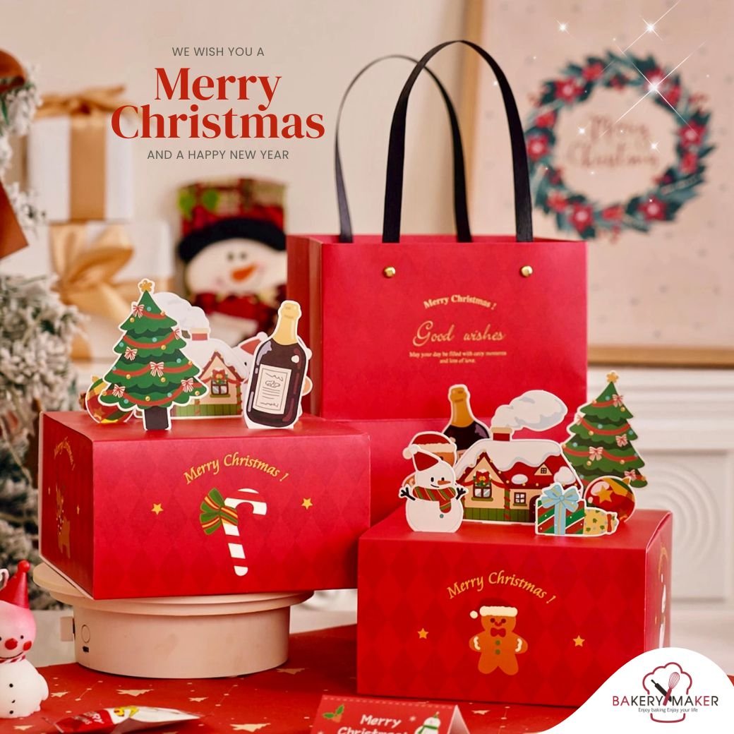 เซ็ทกล่องคริสต์มาส popup พร้อมถุงหิ้ว 1 ชุดกล่องฝาเลื่อน 1 ใบ + ถุงหิ้ว 1 ใบกล่องขนาด 18 x 18 x สูง 10 ซม.ถุงกระดาษ 19 x 19 x สูง 22 ซม.