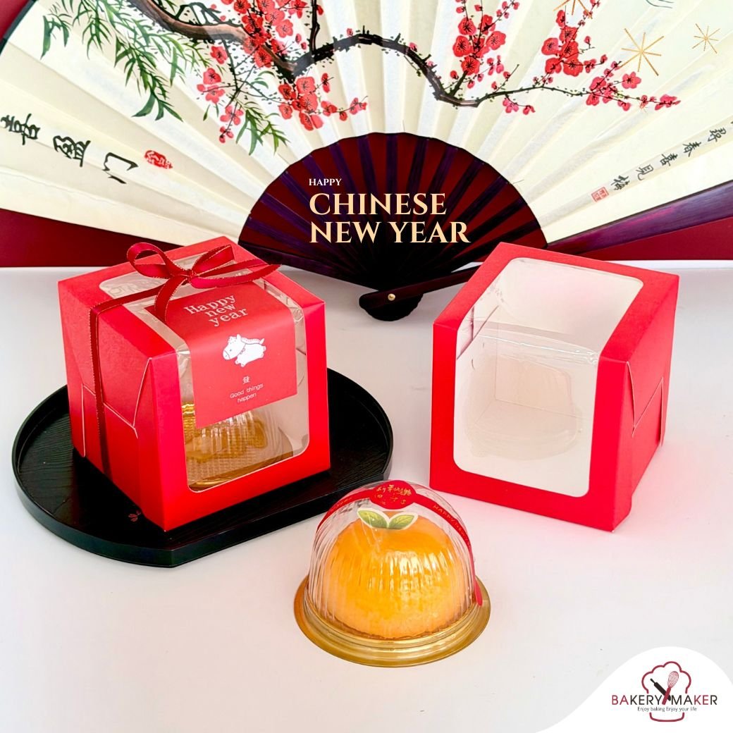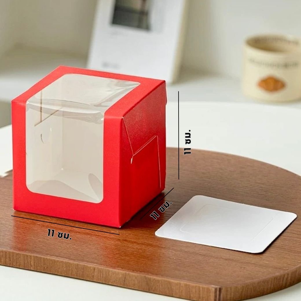กล่องกระดาษสีแดงเจาะหน้าต่าง 10 ใบ ไม่รวมโบว์/สติกเกอร์