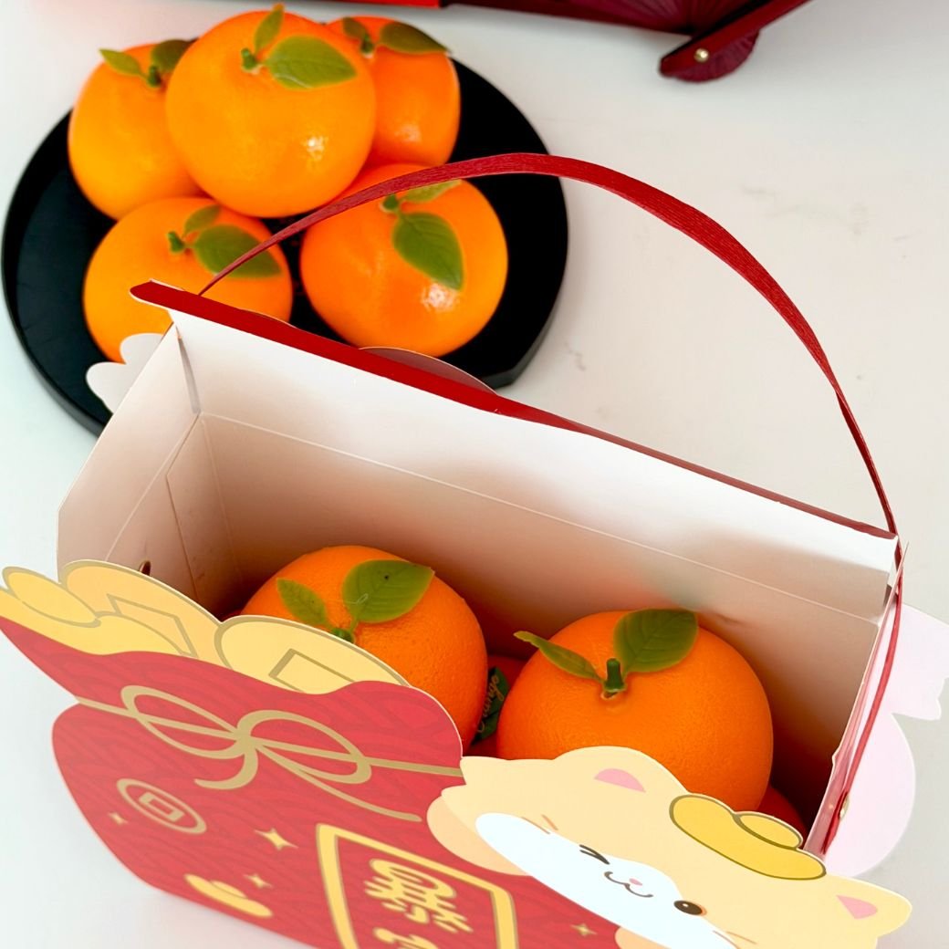 กล่องหูหิ้วลายน้องแมวตรุษจีน/กล่องใส่ส้ม Chinese New Year 5 ใบ