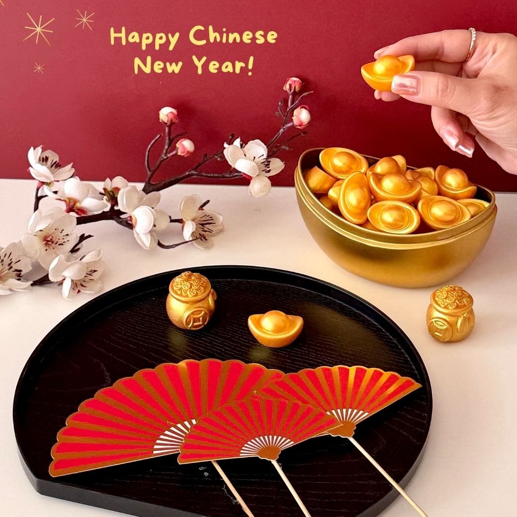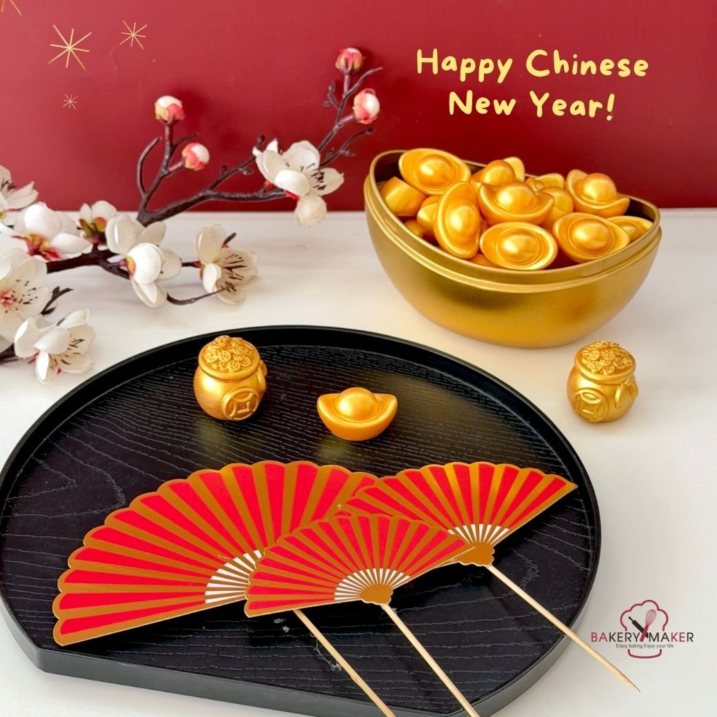 เซ็ทตกแต่งเค้กทองก้อนพลาสติก/พัดกระดาษ