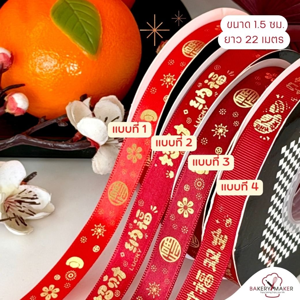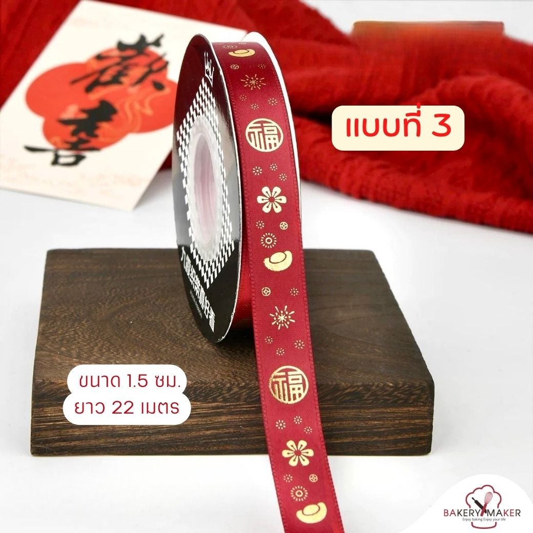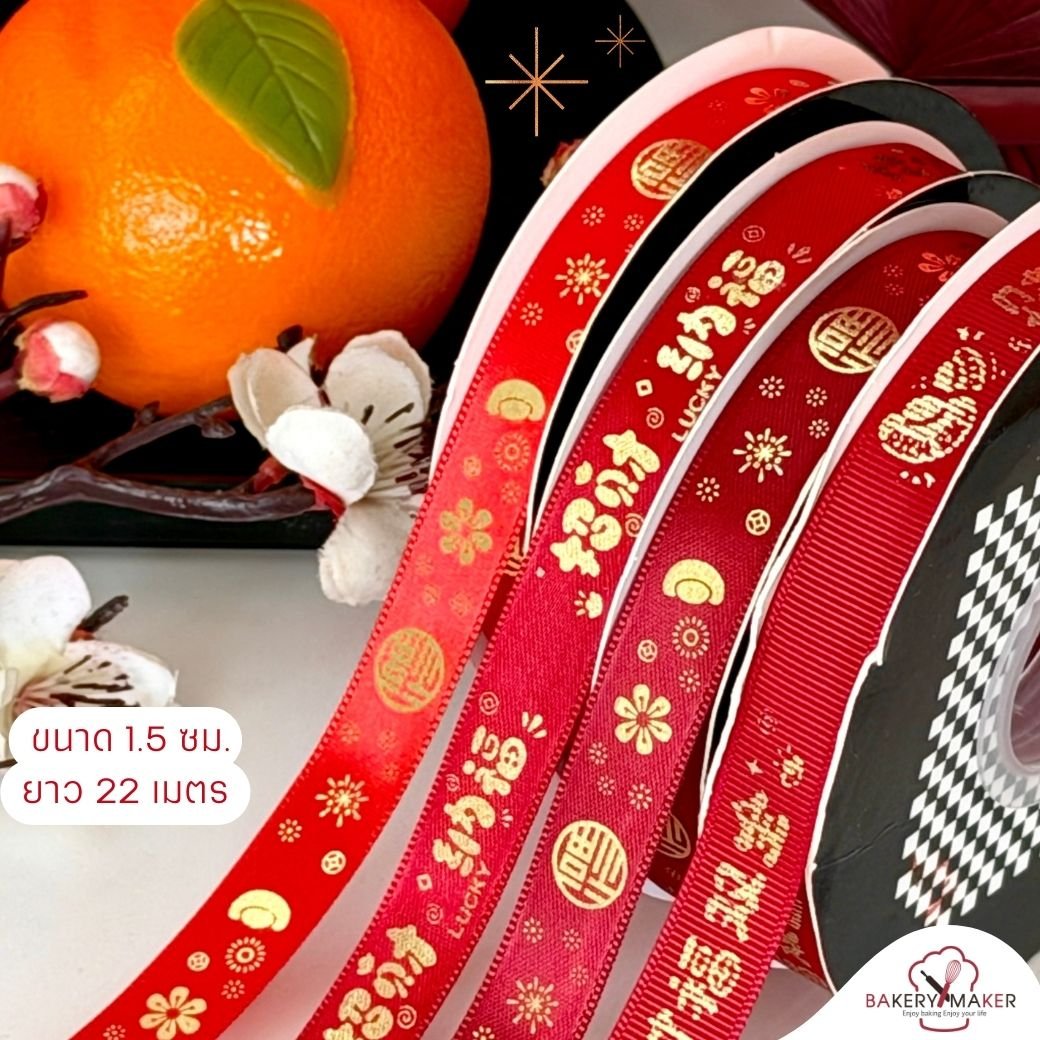 ริบบิ้นพิมพ์ลายตรุษจีน 1 ม้วน 22 เมตร ขนาด 1.5 ซม. / CNY Chinese new year