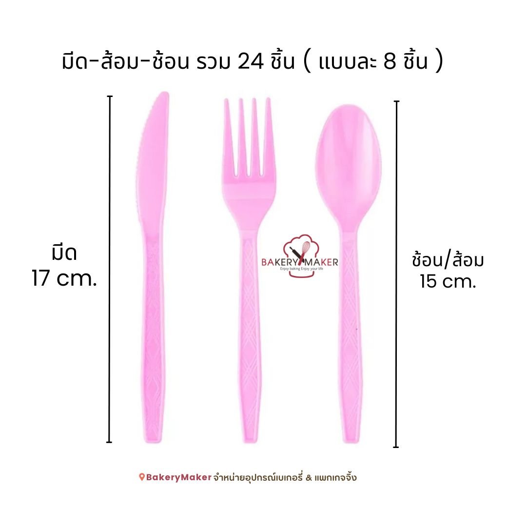 ช้อน+ส้อม+มีด ชมพู 24 ชิ้น